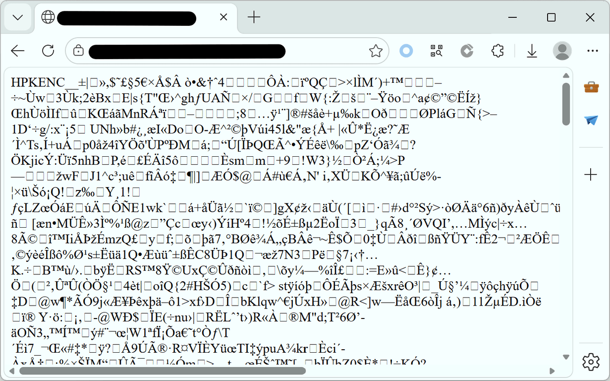 加密完成后,将目录中的文件(不包括备份 zip)上传到 Web 服务器。此时直接访问这些 HTML 文件会看到加密后的乱码,浏览器无法直接展示原始页面: