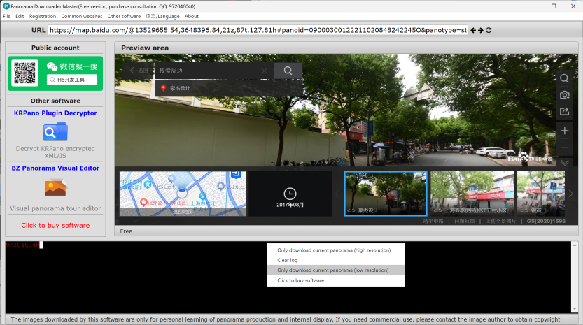 Currently supports KRPano kernel panorama projects and Baidu Street View panorama downloads