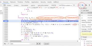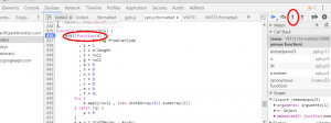 3. refresh the Web page, the code is interrupted at that location, continue to execute code when the code eval when parked on line 436, click the step into button to this function