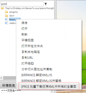 Note: For the real world KRPano project, the primary XML file may not named tour. xml, so you can use the context menu “Open File” to check whether the XML has or tags, which indicates the primary XML file. Then right at the file, select “Download to restore all the panoramas in the XML” in the context menu to download and restore all the panoramas.